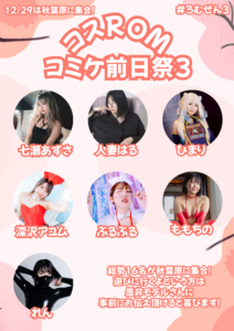 冬コミ前日29日秋葉原にて、コスプレ作品頒布即売会&撮影会「コスROMコミケ前日祭3(ろむぜん3)」を開催!